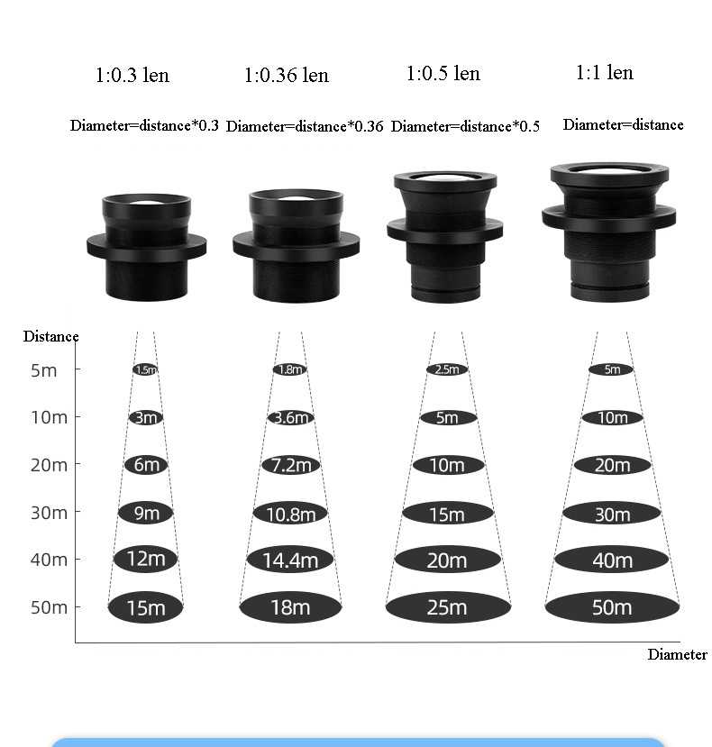 The lens angle determines how your projected image will be distributed and at what distance it will remain clear and bright.
